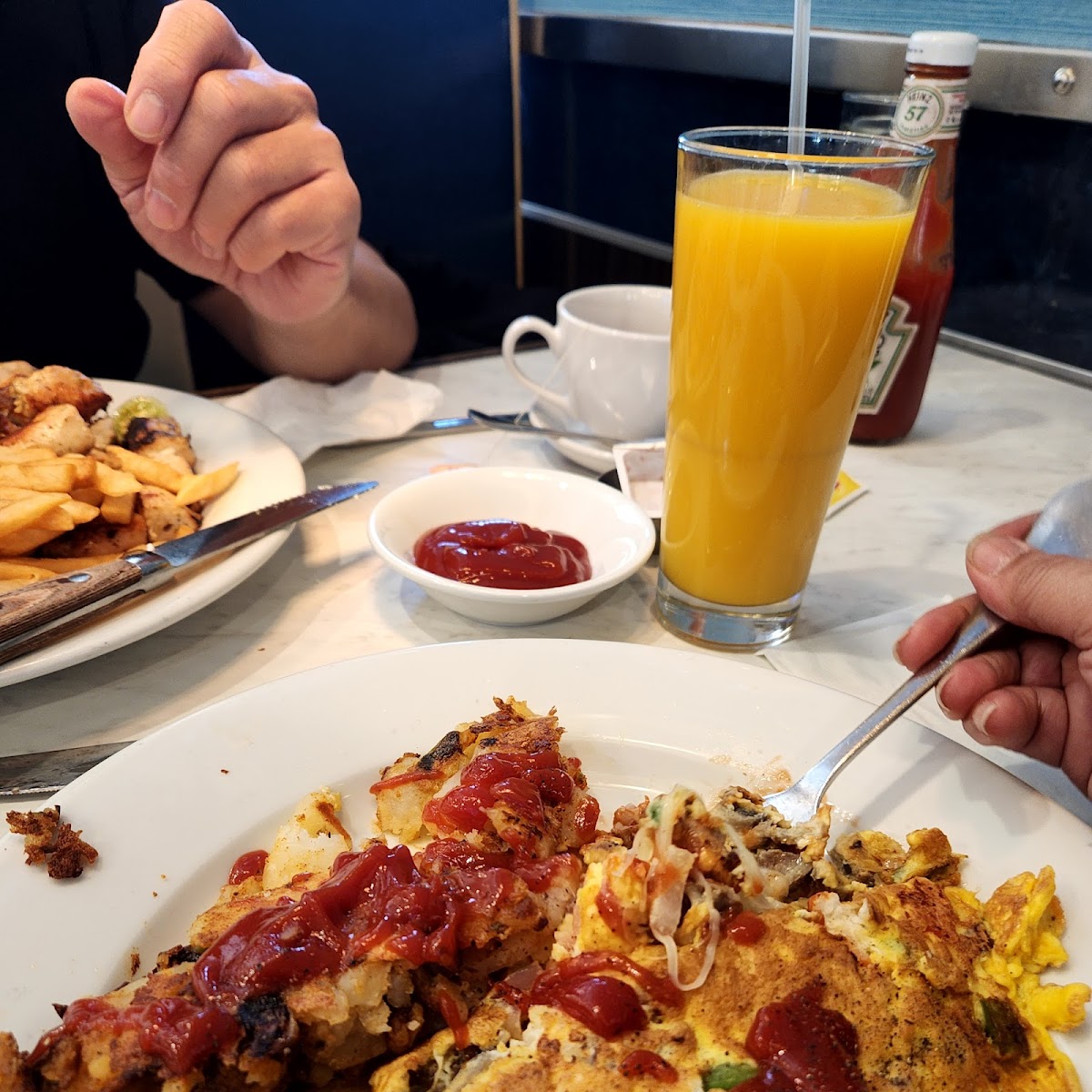 I had the veggie omelette with home potatoes and whole wheat toast. Delicious and very quick. The diner has a very friendly atmosphere to it and it was a great time. I went with my In-laws, husband, and 6-month old daughter. We had a great time.