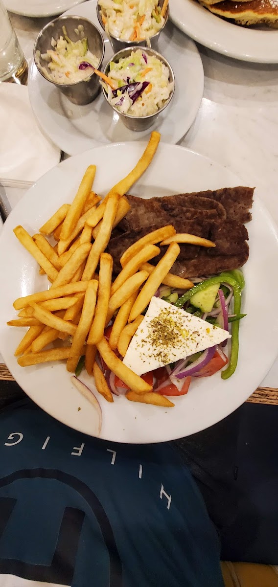 This is a small diner. We went there at 4 pm on a Saturday afternoon. It is really cozy inside. I ordered Lemon Soup and a bacon cheeseburger. My friend got Lemon Chicken and Potatoes, Greek style. The portions were very large. The lemon soup was amazing. The lemon chicken was so juicy and flavorful. My Bacon Cheeseburger was really good. The bacon was huge and roll was really perfect. So delicious. Then we ended with cheesecake. It was a great meal and not that expensive. Thanks guys, we had a good time.